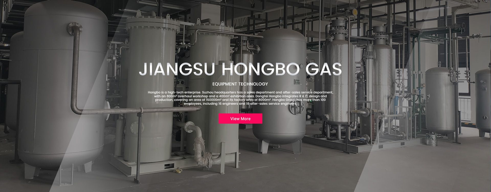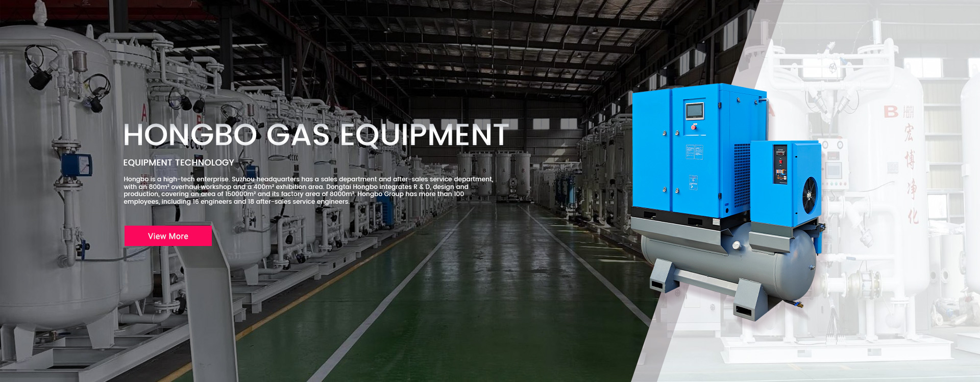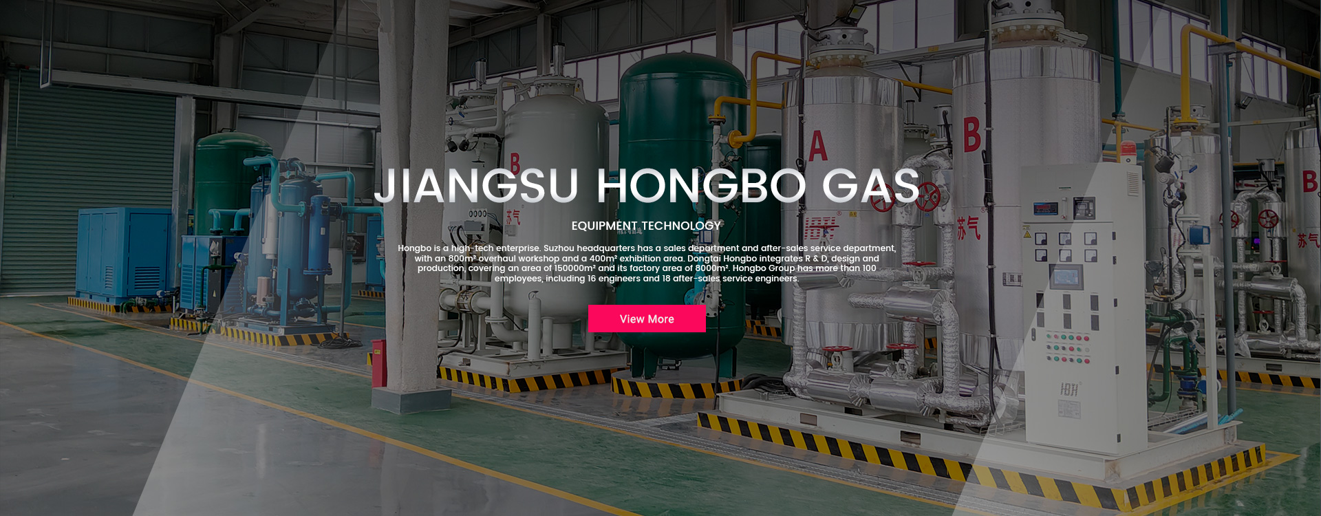 Podjetje Jiangsu Hongbo Gas Equipment Technology Group Co. LTD je bilo ustanovljeno leta 2006. Njegov registrirani kapital znaša 20 milijonov juanov. Hongbo je visokotehnološko podjetje. Sedež podjetja v Suzhouju ima prodajni oddelek in oddelek za poprodajne storitve, z 800 m² veliko delavnico za remont in 400 m² razstavnega prostora. Dongtai Hongbo združuje raziskave in razvoj, načrtovanje in proizvodnjo, pokriva površino 150.000 m² in tovarniško površino 8000 m². Skupina Hongbo ima več kot 100 zaposlenih, vključno s 16 inženirji in 18 inženirji za poprodajne storitve.